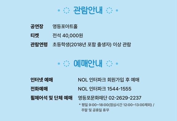 ✅ 휠체어석 티켓 : 영등포 문화 재단 02-2629- 2237