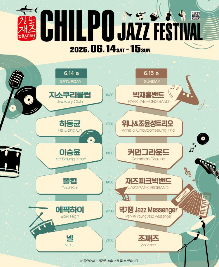 💨 칠포재즈페스티벌 2025 타임라인 및 공연 안내도