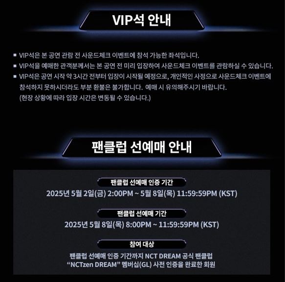 ··· 팬클럽 선예매 : 2025년 5월 8일 오전 10시 ~ 오후 5시 59분 59초