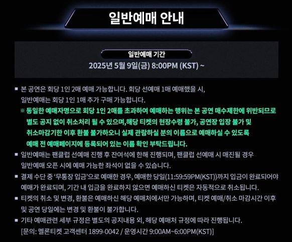 ··· 일반 예매 : 2025년 5월 9일 오전 10시 ~