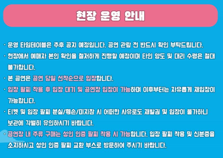 ≡ 티켓은 온라인 예매 수량 소진 시, 현장 판매 미진행